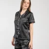 Pijama luxury grabado tipo short para dama, ideal para quienes buscan comodidad con un toque elegante. Confeccionada en tela suave con acabado satinado, incluye camisa de manga corta con botones y short a juego, perfecta para climas cálidos y noches frescas.